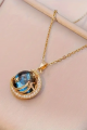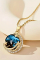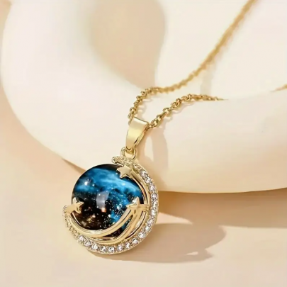 Gökyüzünün büyüsünü yansıtan Büyüleyici Mavi Galaksi Gezegen Ay Yıldız Kolye, evrenin enerjisini tarzınıza taşır.