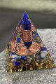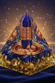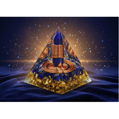 "Mistik Lapis Lazuli'nin derin mavisi, bakır tel bobin ve doğal Lapis Lazuli çip tabanı ile birleşiyor. Bu özel tasarım Çift Uçlu Orgon Piramidi, etrafınızdaki negatif enerjiyi dönüştürürken, yaşam alanınıza huzur, bilgelik ve güçlü bir canlılık katar. Altın rengi detaylar ve göz alıcı yapısıyla sadece bir enerji aracı değil, aynı zamanda dekorasyonunuzun da en çarpıcı parçası olacak.